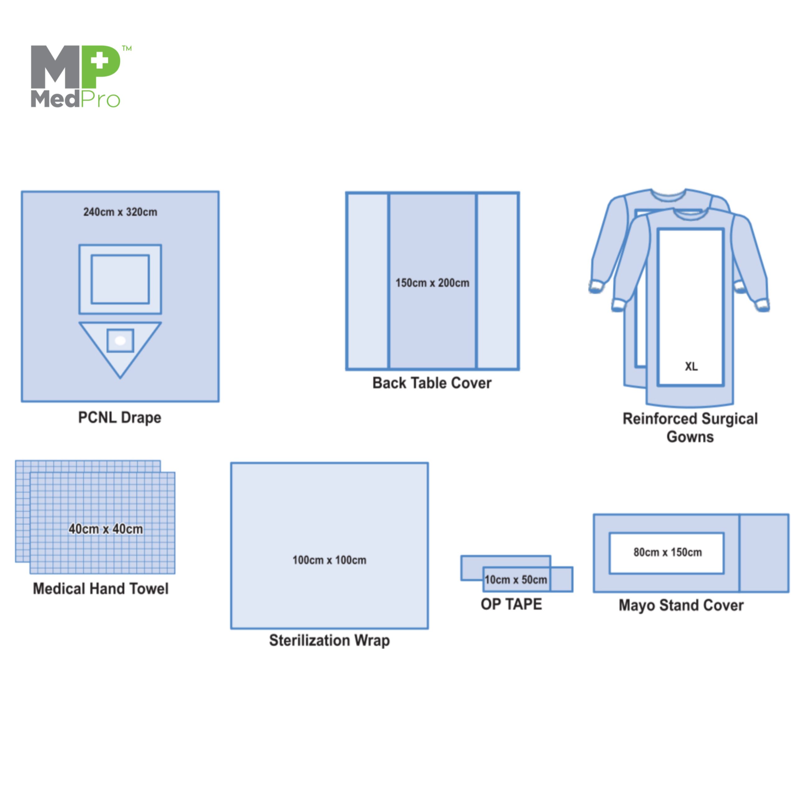 | PCNL Drape (with fluid collection pouch) | 240cm x 320cm | 1pc |